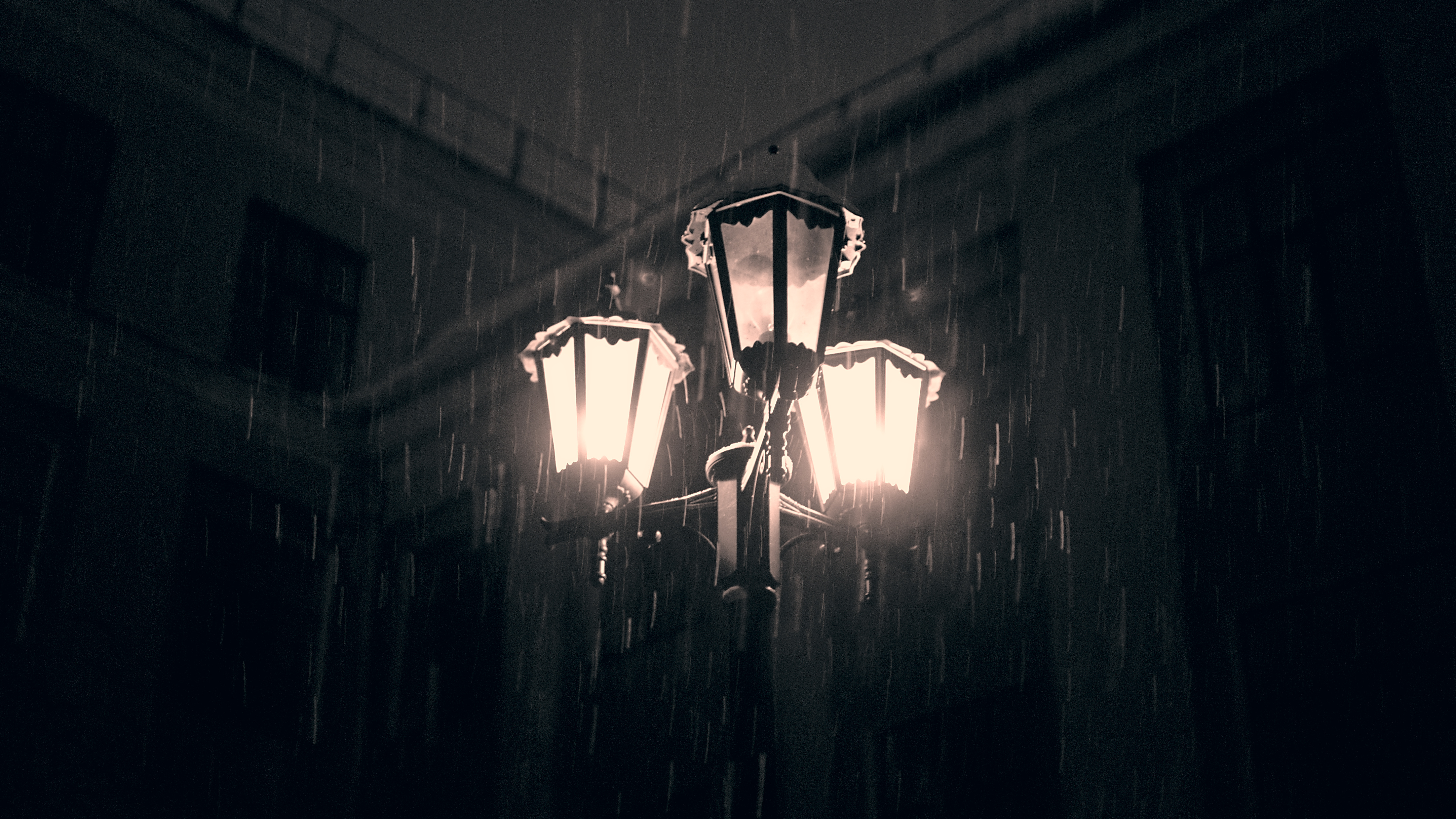 Keywords: street, light, lamp, lamppost, night, snowfall.